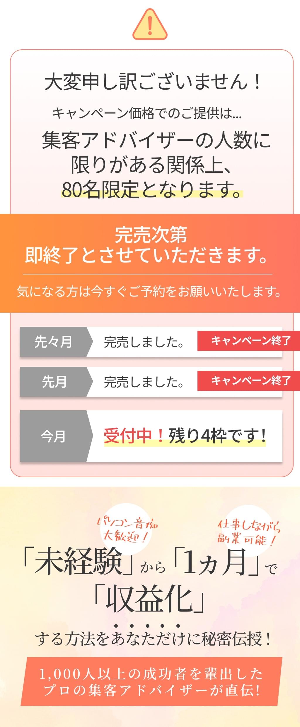 体験1000円キャンペーン終了まで
